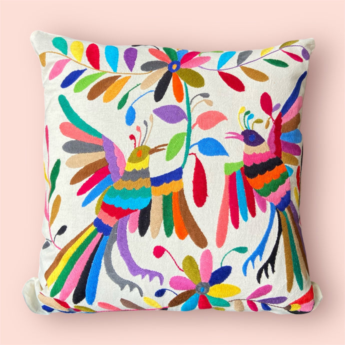 Handbestickter Tenango-Kissenbezug “Pavo Reales”